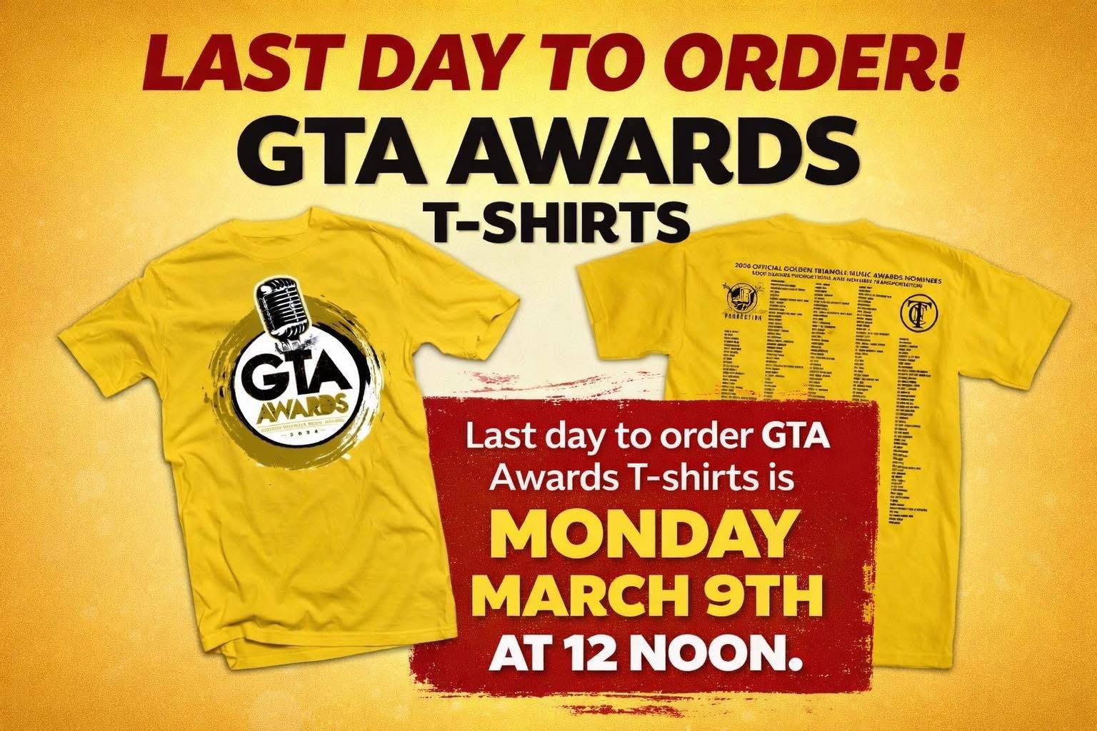 Get your official 2026 t-shirts for the Golden Triangle Music Awards.